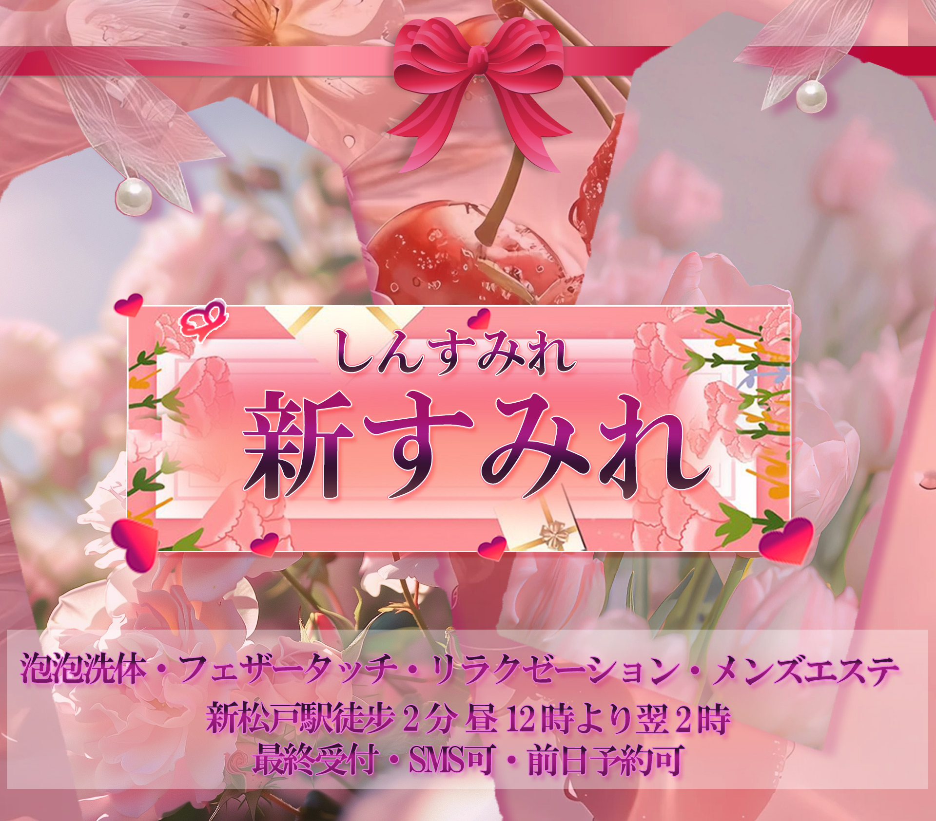この度は、数あるリラクゼーションの中に、♥新松戸すみれのホームページをご覧頂き、誠にありがとうございます。リピート率90%以上を誇る当店では、経験豊富なセラピストの『洗練された施術スキル』と『お客様目線の心温まる接客』が今までお客様からご支持を頂いてきました、ご来店を心よりお待ち申し上げます。